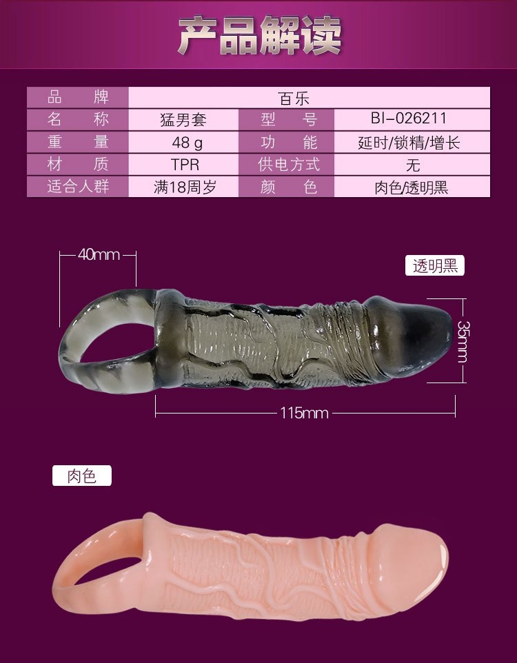 ปลอกเพิ่มขนาดดีไซน์สุดคลาสสิก ใช้วัสดุเป็นซิลิโคนอย่างดี นุ่มสบาย สร้างความเสียวซ่านให้กับคู่รักของท่าน มีความยาวลำกล้องถึง11.5ซม. ตัวครอบไข่ยาวถึง 4ซม. เรียกได้ว่าครอบลำกล้องได้หมดเลยทีเดียว