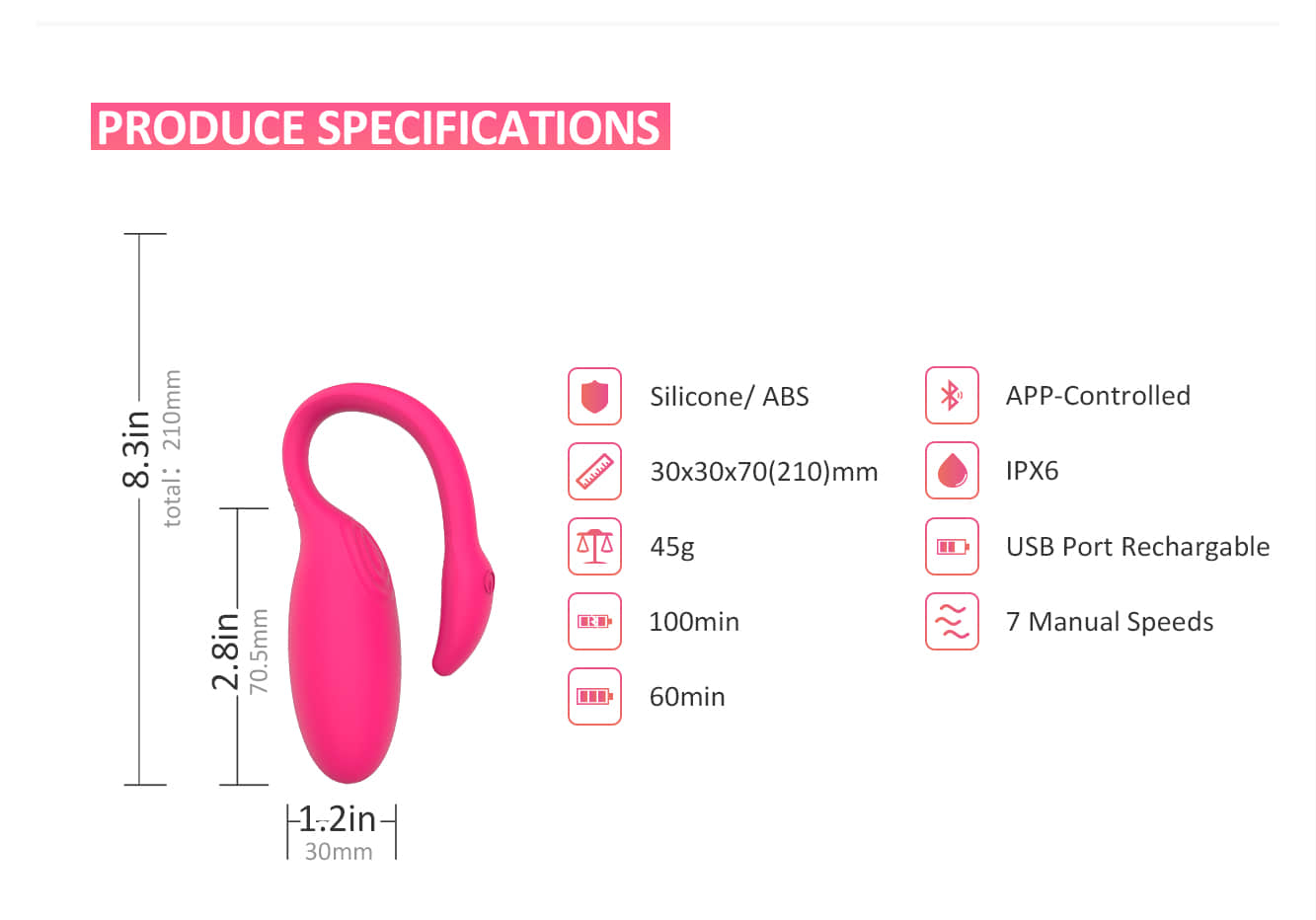✅ ความยาวไข่สั่น 7.05 ซม. / 2.8 นิ้ว